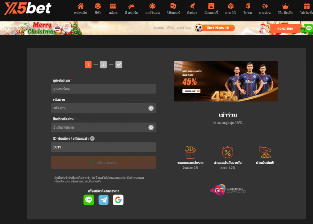 - เข้า ทางเข้า X5BET ที่ถูกต้อง แล้วมองหาปุ่ม สมัครสมาชิก (มักอยู่มุมขวาบน)